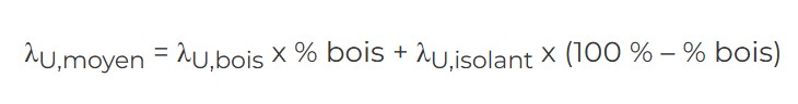 👉 Dans ce calcul, l'isolant est considéré comme un matériau uniforme, sans tenir compte de la fraction de bois.
