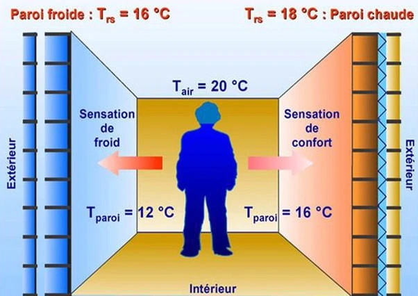 Le confort thermique résulte avant tout des échanges de chaleur entre notre corps et l’environnement. Ces échanges sont influencés par plusieurs facteurs qui interagissent en permanence : la température de l’air et des surfaces, l’humidité ambiante, et les mouvements d’air, même faibles. Un courant d’air imperceptible, un air trop sec ou trop humide, ou des parois froides peuvent suffire à créer une sensation d’inconfort, y compris dans un logement pourtant « bien chauffé ».